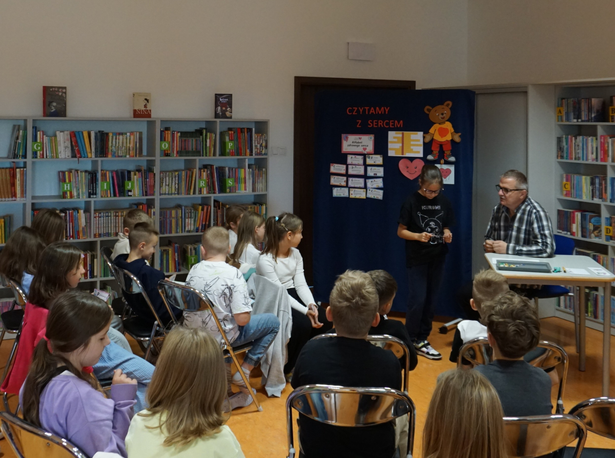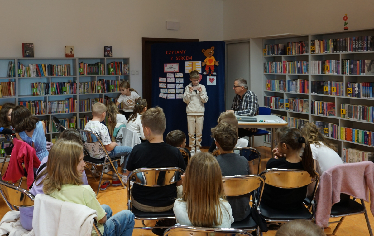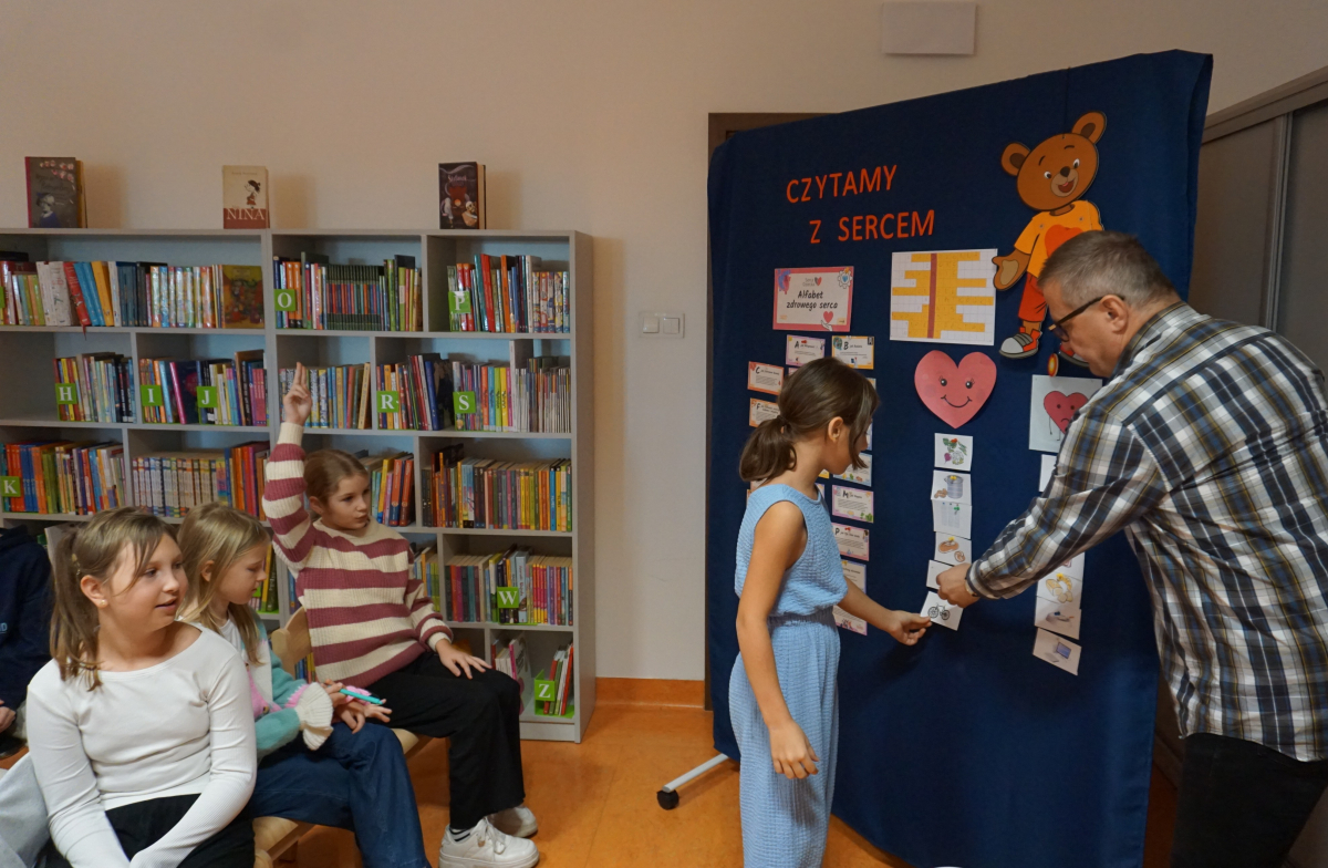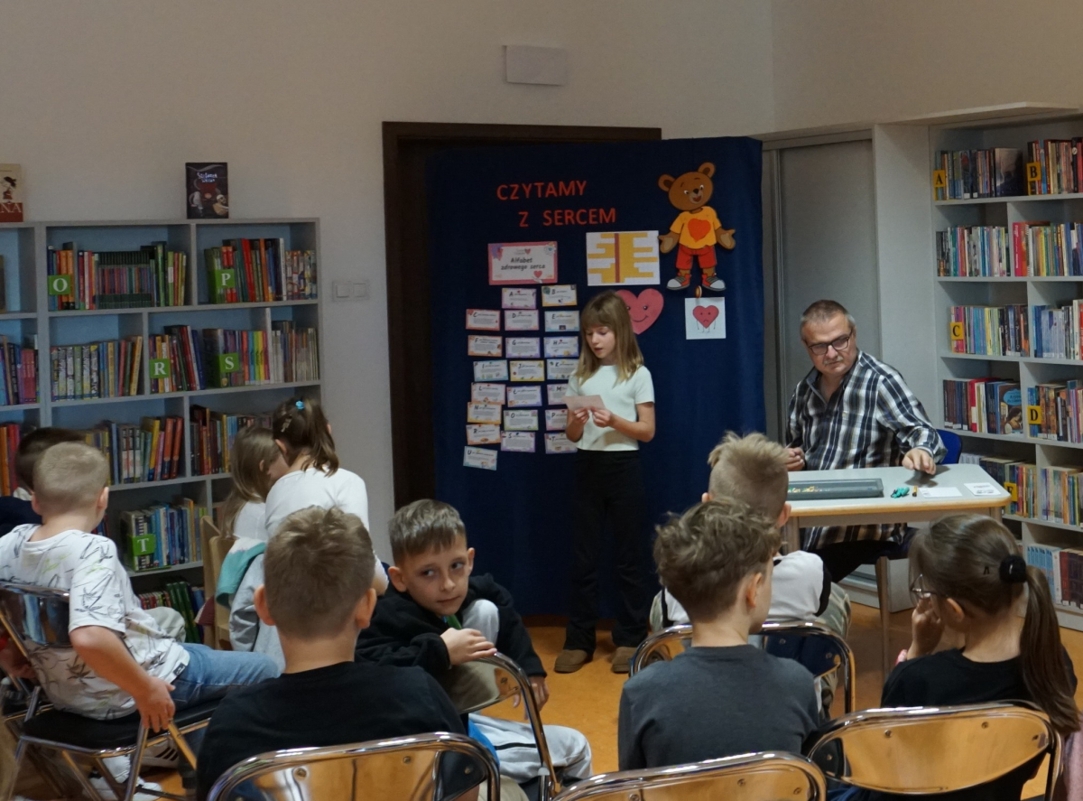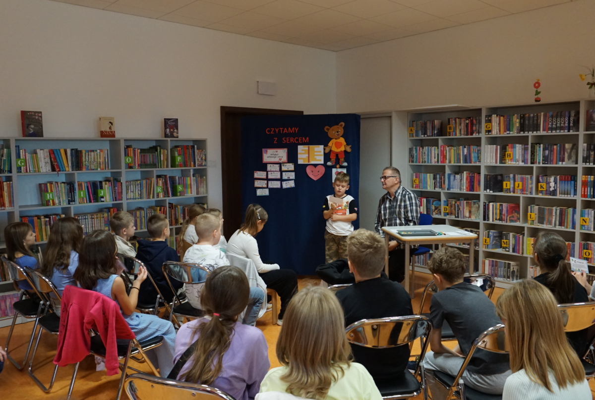 Gościliśmy dziś w Bibliotece uczniów klasy IIIc wraz z wychowawcą panią Anną Kij. Okazja ku temu była podwójna, po pierwsze Ogólnopolski Dzień Głośnego Czytania a po wtóre Światowy Dzień Serca. I tak oto z połączenia wyszło nam „Czytamy z sercem”. Jako lekturę dzieci wysłuchały fragmentu książki Wojciecha Widłaka „Dwa serca anioła”, która opowiada o chłopcu zmagającym się z poważną wadą serca. Następnie rozmawialiśmy o sercu i jak o nie dbać. Dzieci stworzyły „Alfabet zdrowego serca” oraz diagram dobrych i złych zachowań dla naszego serca. Nie zapomnieliśmy również o sercu jako wyrazie uczuć, o miłości zwłaszcza w połączeniu z literaturą piękną. Wszak w naszej Bibliotece książek o miłości, czyli „książek z sercem” nie brakuje.