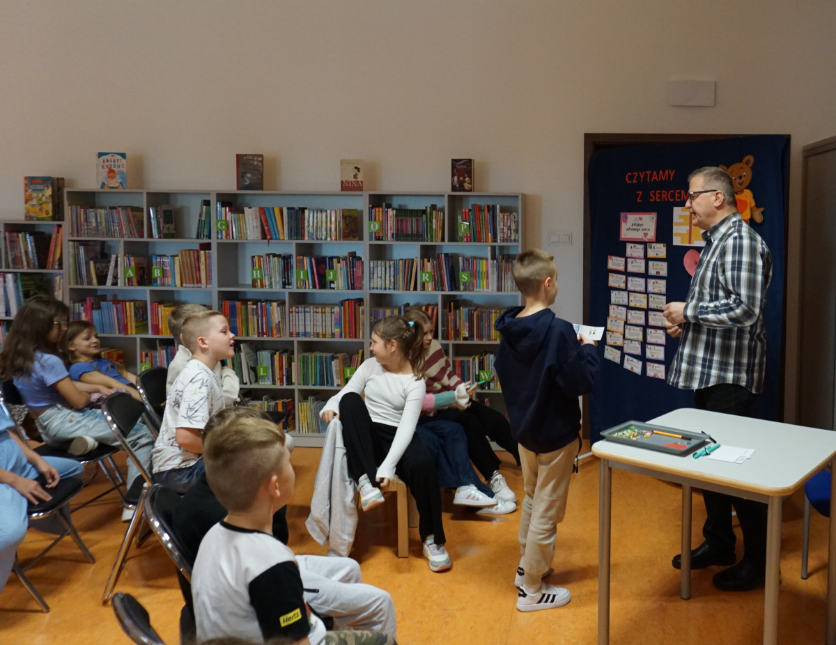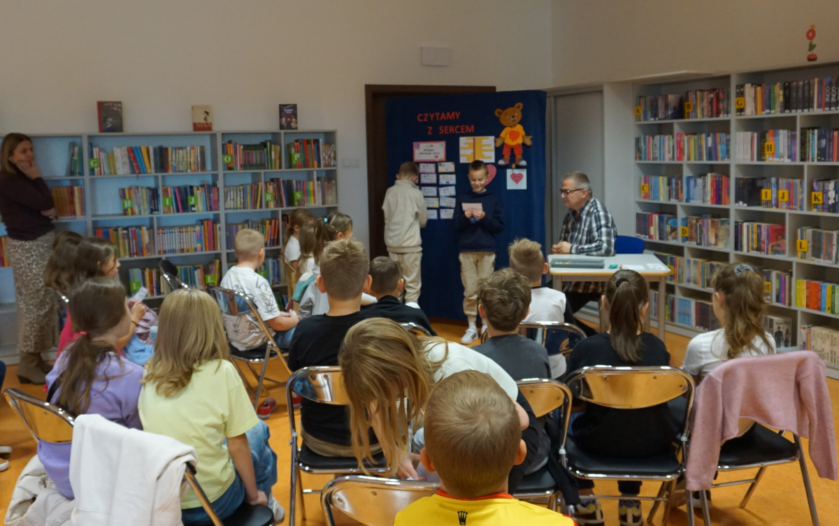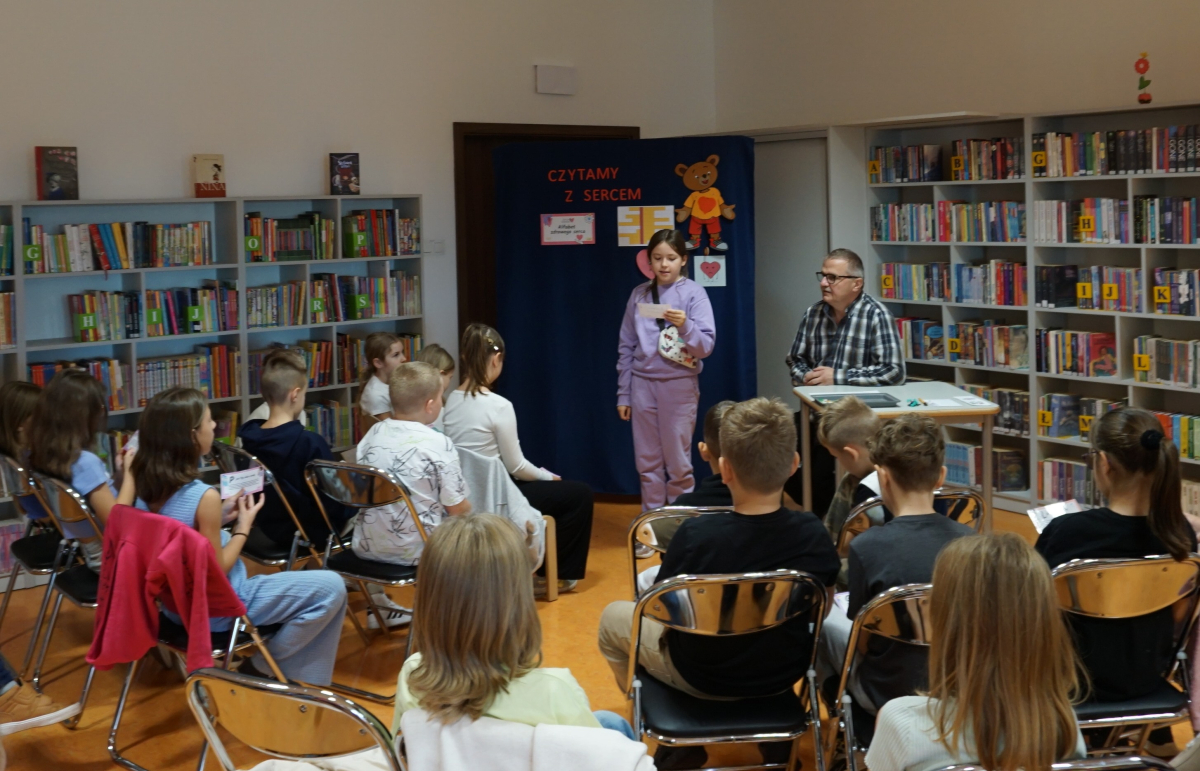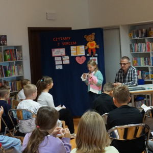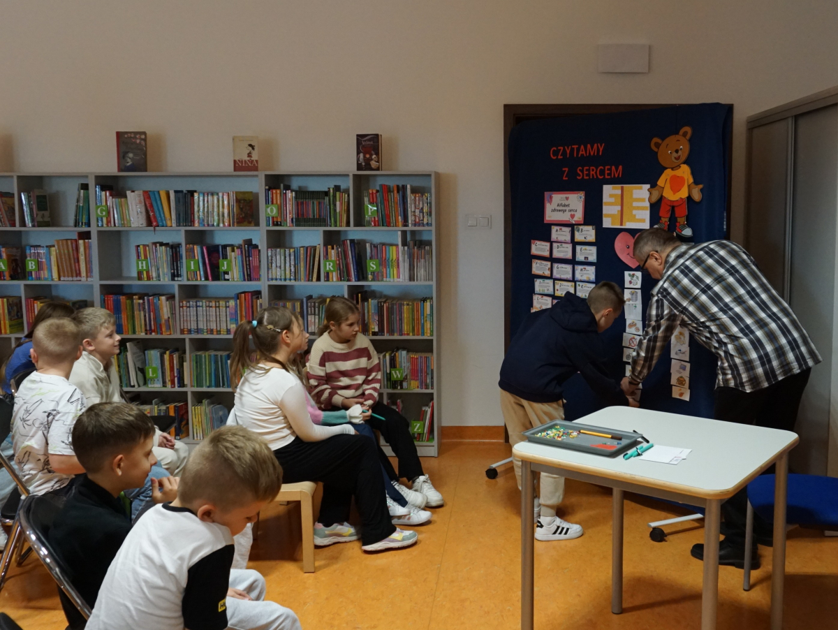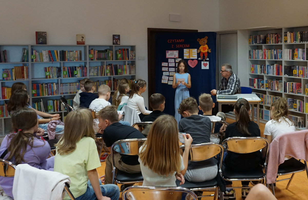 Gościliśmy dziś w Bibliotece uczniów klasy IIIc wraz z wychowawcą panią Anną Kij. Okazja ku temu była podwójna, po pierwsze Ogólnopolski Dzień Głośnego Czytania a po wtóre Światowy Dzień Serca. I tak oto z połączenia wyszło nam „Czytamy z sercem”. Jako lekturę dzieci wysłuchały fragmentu książki Wojciecha Widłaka „Dwa serca anioła”, która opowiada o chłopcu zmagającym się z poważną wadą serca. Następnie rozmawialiśmy o sercu i jak o nie dbać. Dzieci stworzyły „Alfabet zdrowego serca” oraz diagram dobrych i złych zachowań dla naszego serca. Nie zapomnieliśmy również o sercu jako wyrazie uczuć, o miłości zwłaszcza w połączeniu z literaturą piękną. Wszak w naszej Bibliotece książek o miłości, czyli „książek z sercem” nie brakuje.
