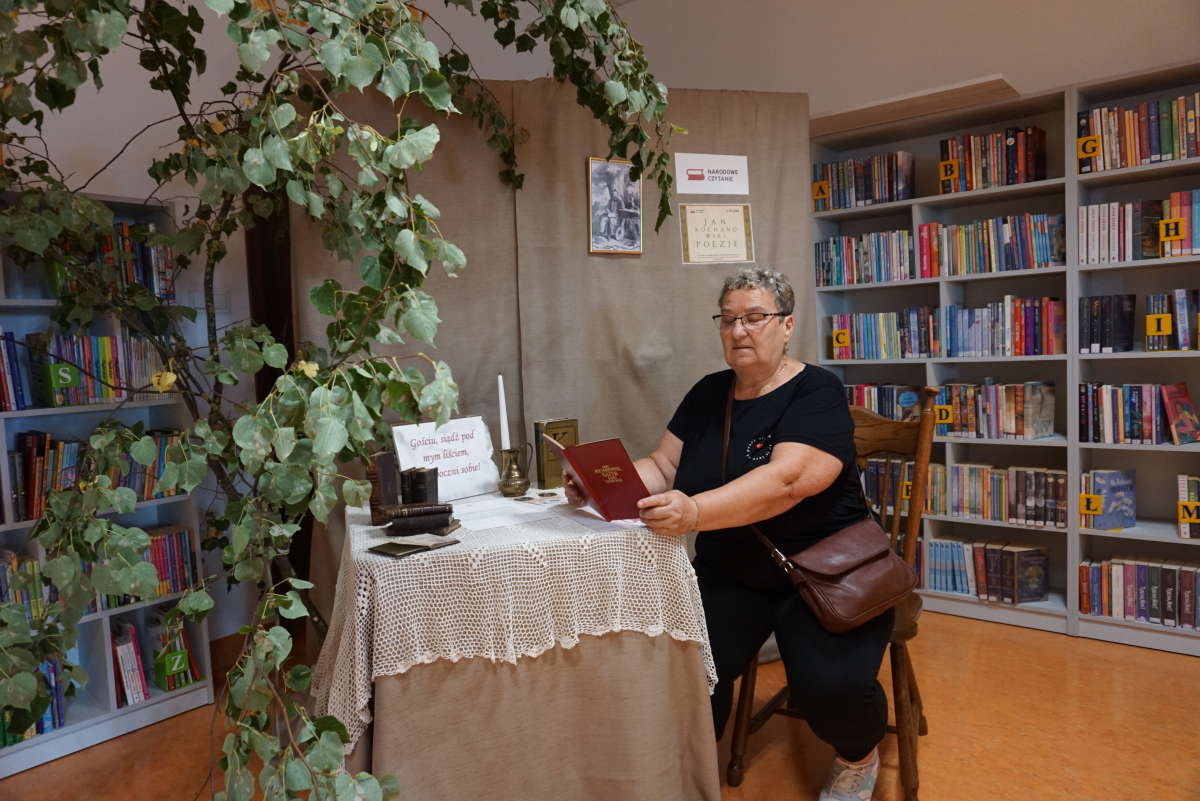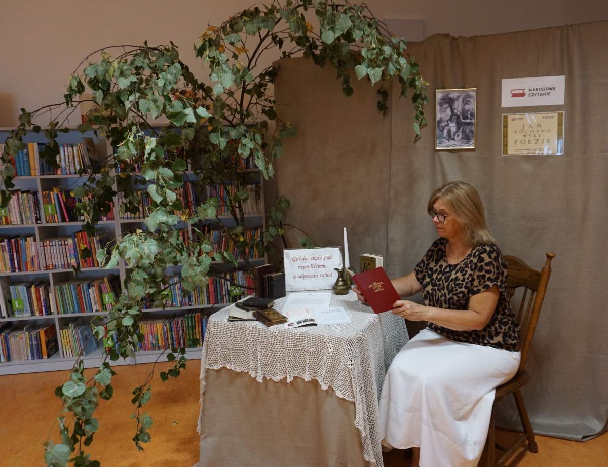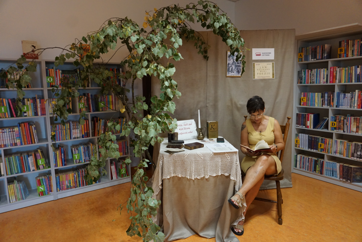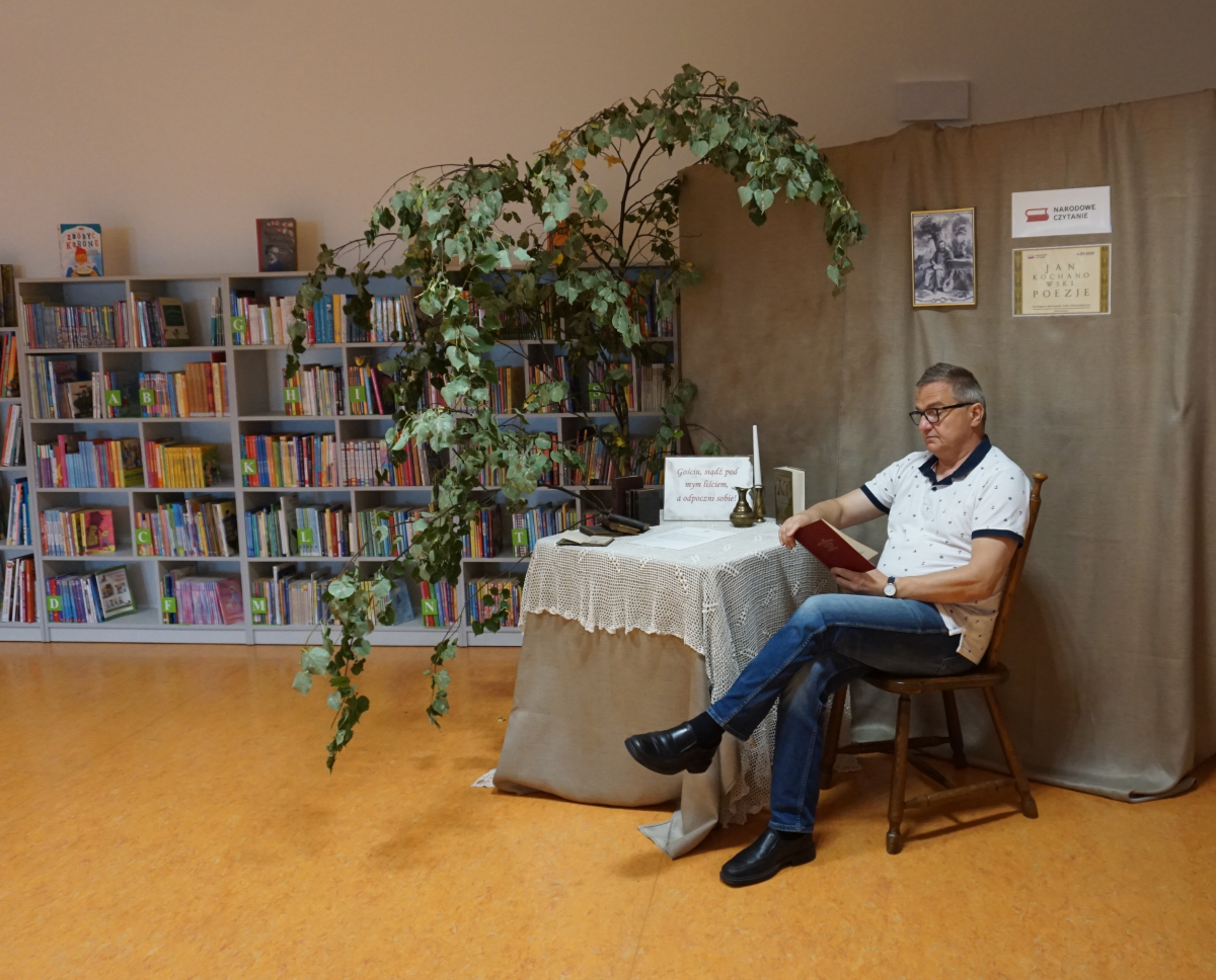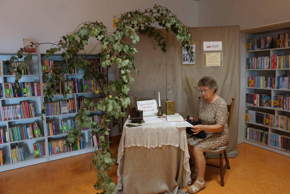 Kolejna edycja Narodowego Czytania dobiegła końca. Tym razem lekturę stanowiła twórczość Jana Kochanowskiego. W naszej bibliotece przez cały piątkowy dzień zapraszaliśmy czytelników i gości do zmierzenia się z twórczością tego renesansowego poety. Staropolszczyzna, w której tworzył poeta nastręczała, niektórym czytającym kłopoty ale i tak dzielnie radzili sobie z poezją. Czytane były Fraszki, Treny, poemat Satyr albo Dziki mąż oraz fragmenty Odprawy posłów greckich. Przez cały piątkowy dzień odwiedziło nas trzydziestu ośmiu czytelników i tylko nielicznie – zawstydzeni, nie odważyli się zasiąść pod pachnącą lipą i przeczytać fragment z twórczości Jana z Czarnolasu. Jednym z czytających był Wójt Gminy Nowiny pan Łukasz Gryń. Dla pierwszych czytelników, którym niestraszne było wziąć udział w naszej akcji czytelniczej przygotowaliśmy egzemplarze książki Fraszki, Pieśni, Treny Jana Kochanowskiego i pamiątkowe zakładki. Każda z przekazywanych książek posiadała specjalną okolicznościową pieczęć, którą otrzymaliśmy z Kancelarii Prezydenta RP. Akcję Narodowego Czytania zapoczątkowano w 2012 roku z inicjatywy Prezydenta RP. Od tego czasu, rok rocznie odbywa się ogólnopolskie czytanie innego, wskazanego przez głowę naszego państwa autora. Jako pierwsza czytana była epopeja Adama Mickiewicza Pan Tadeusz.