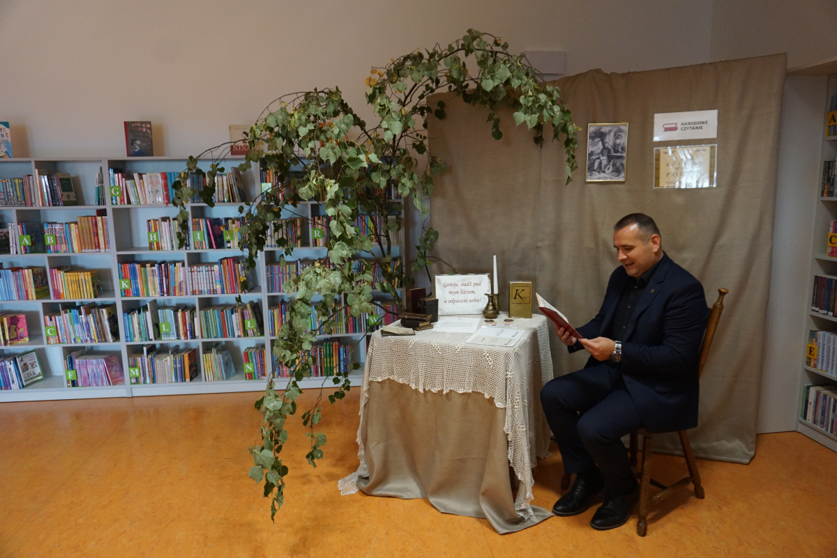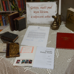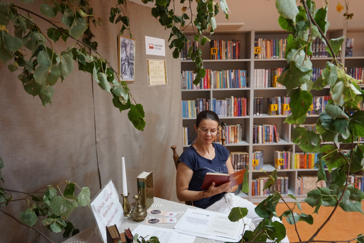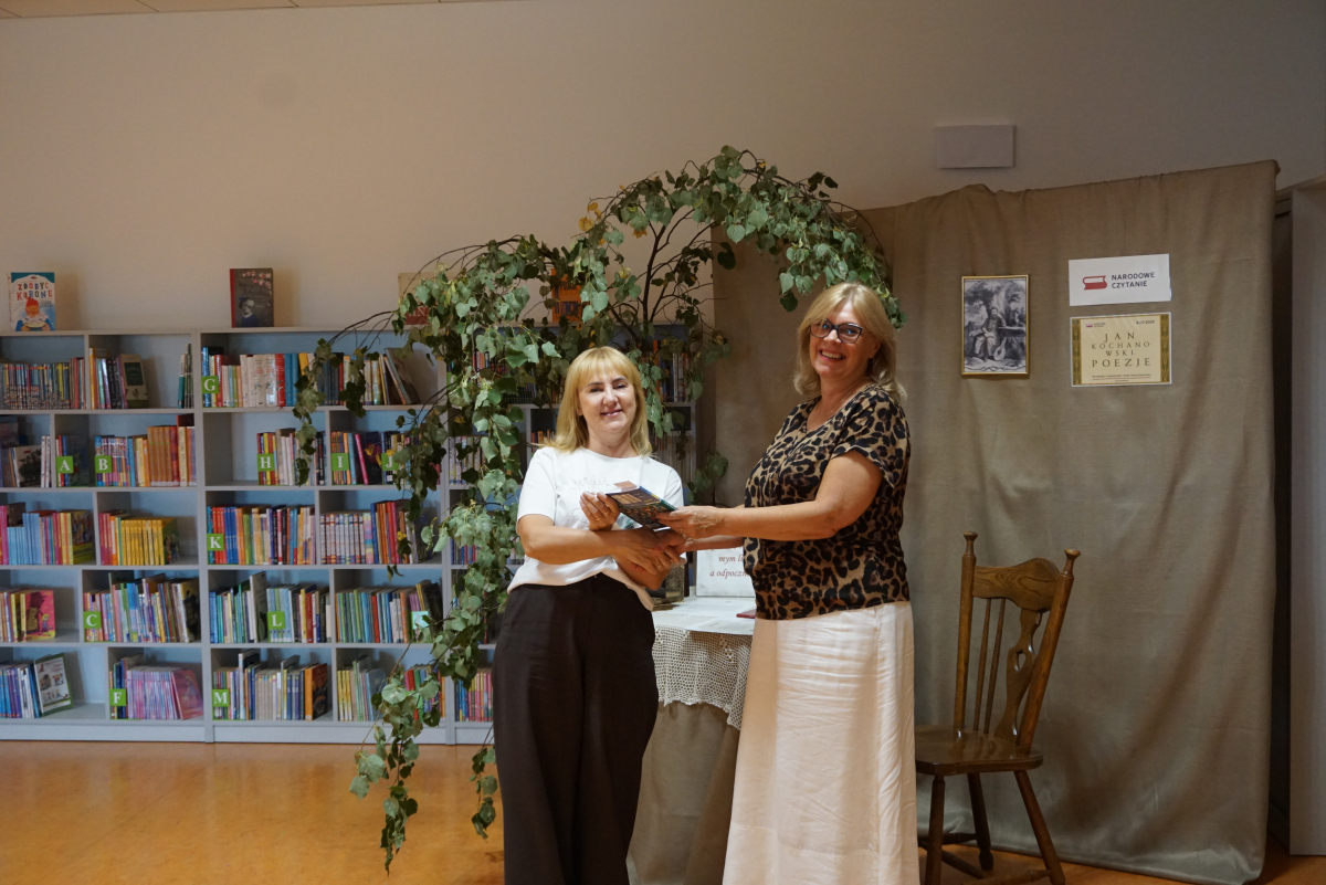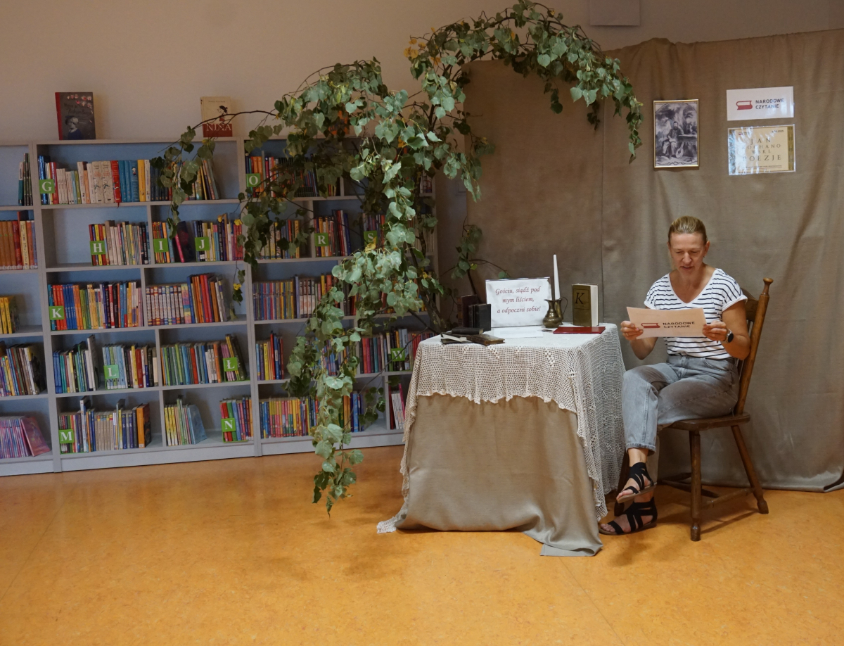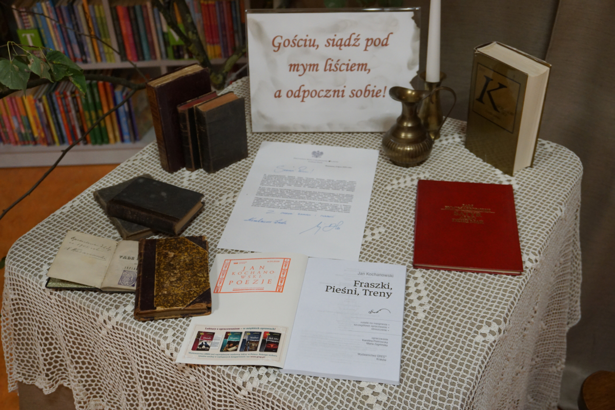 Kolejna edycja Narodowego Czytania dobiegła końca. Tym razem lekturę stanowiła twórczość Jana Kochanowskiego. W naszej bibliotece przez cały piątkowy dzień zapraszaliśmy czytelników i gości do zmierzenia się z twórczością tego renesansowego poety. Staropolszczyzna, w której tworzył poeta nastręczała, niektórym czytającym kłopoty ale i tak dzielnie radzili sobie z poezją. Czytane były Fraszki, Treny, poemat Satyr albo Dziki mąż oraz fragmenty Odprawy posłów greckich. Przez cały piątkowy dzień odwiedziło nas trzydziestu ośmiu czytelników i tylko nielicznie – zawstydzeni, nie odważyli się zasiąść pod pachnącą lipą i przeczytać fragment z twórczości Jana z Czarnolasu. Jednym z czytających był Wójt Gminy Nowiny pan Łukasz Gryń. Dla pierwszych czytelników, którym niestraszne było wziąć udział w naszej akcji czytelniczej przygotowaliśmy egzemplarze książki Fraszki, Pieśni, Treny Jana Kochanowskiego i pamiątkowe zakładki. Każda z przekazywanych książek posiadała specjalną okolicznościową pieczęć, którą otrzymaliśmy z Kancelarii Prezydenta RP. Akcję Narodowego Czytania zapoczątkowano w 2012 roku z inicjatywy Prezydenta RP. Od tego czasu, rok rocznie odbywa się ogólnopolskie czytanie innego, wskazanego przez głowę naszego państwa autora. Jako pierwsza czytana była epopeja Adama Mickiewicza Pan Tadeusz.